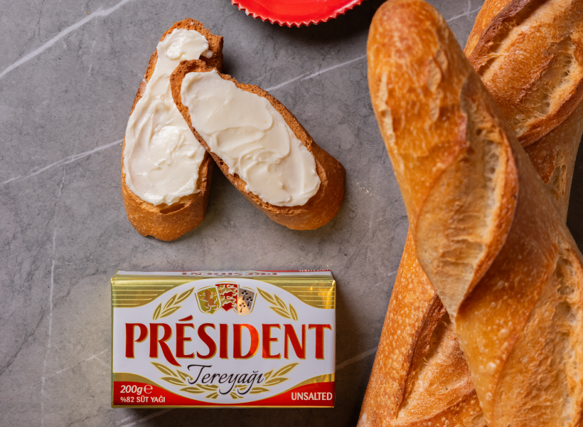Uluslararası pazarlarda tereyağı kategorisinin önde gelen markalarından Président’in tereyağı ürünleri artık Türkiye’de de tüketicilerle buluşuyor. Avrupa’nın peynir, tereyağı ve krema ustası Président’in 90 yıllık deneyimiyle ve Türkiye’nin yüksek kaliteli sütleri ile üretilen Président Tereyağı tüketicilere benzersiz bir lezzet sunuyor. Katkı maddesi, renklendirici veya koruyucu içermeyen Président Tereyağı; gastronomiye meraklı, gurme tatlara ilgi duyan mutfak severler ile tereyağında süt lezzeti arayan tüketiciler için mükemmel bir seçenek sunuyor.